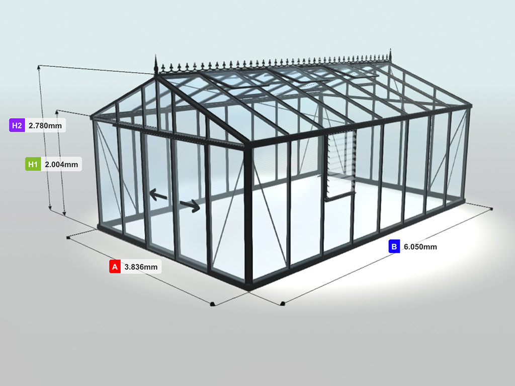 Alle serres van Janssens worden geleverd met 4 mm veiligheidsglas, een gootprofiel met waterafvoer (40 mm) tot aan het maaiveld en een geïntegreerd stevig funderingsprofiel dat verankerd kan worden. De Helios Master XL is standaard voorzien van maar liefst 2 schuifdeuren, 6 dakramen en van 1 louvre-zijraam met lamellen.