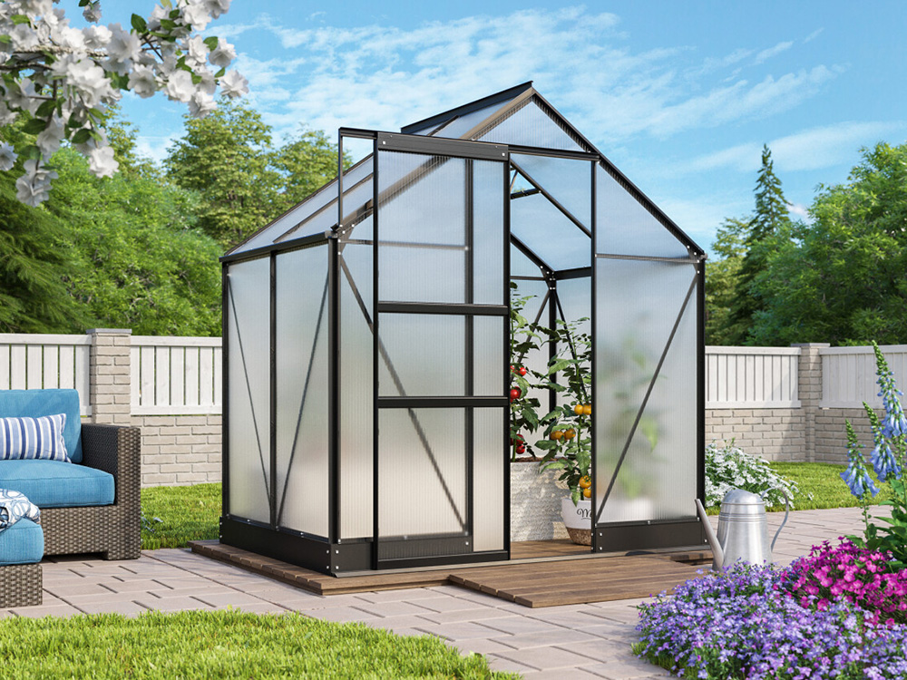 Standaard wordt de kas geleverd met 4 mm dik polycarbonaat, een lichtgewicht en vrijwel onbreekbaar materiaal dat uitstekende isolatie biedt. Optioneel is ook 6 mm polycarbonaat verkrijgbaar voor nog betere isolatie.