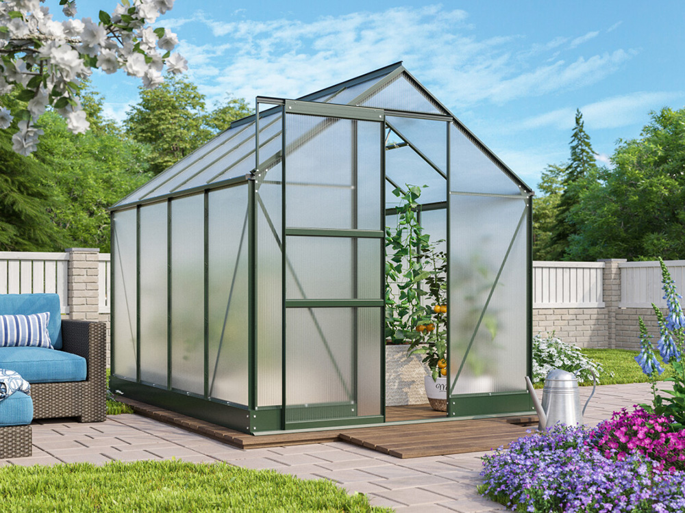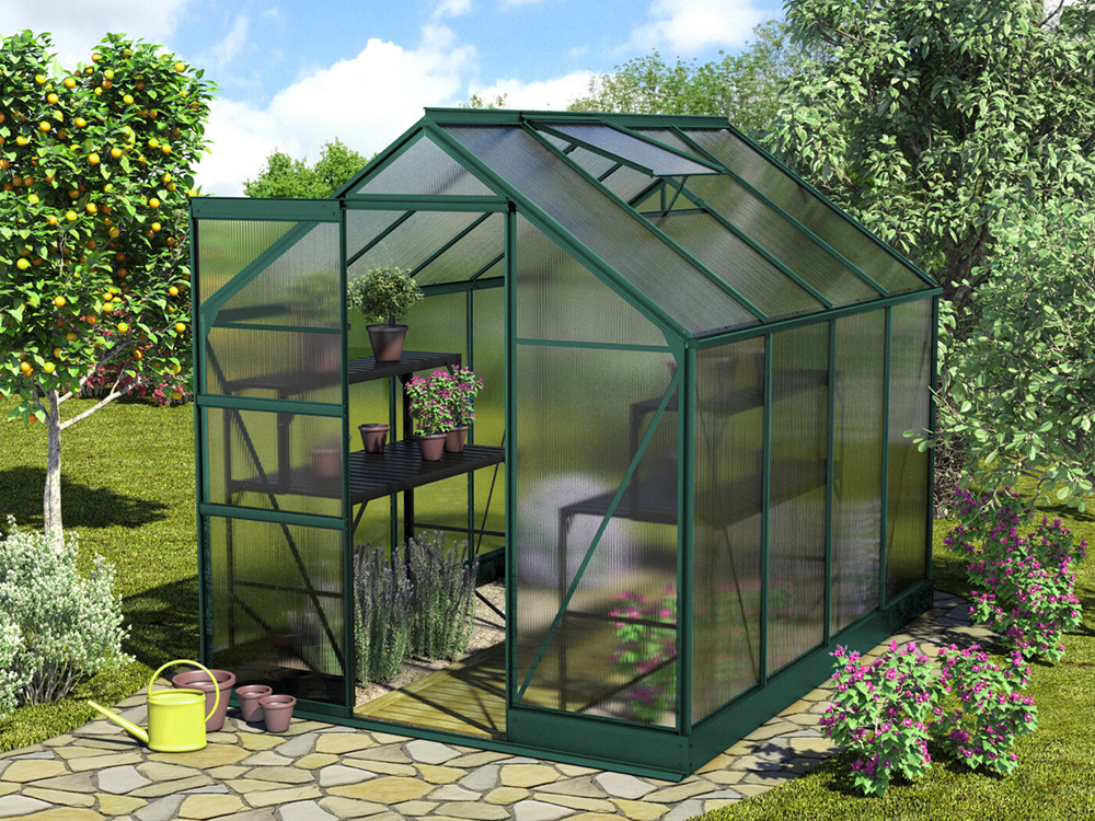 Standaard wordt de tuinkas geleverd met 4 mm polycarbonaatplaten. Deze dubbelwandige platen zijn licht van gewicht, bijna onbreekbaar en bieden een uitstekende isolatie! In optie kan je kiezen voor 6 mm polycarbonaat.