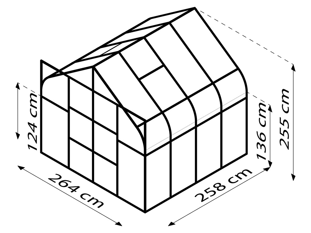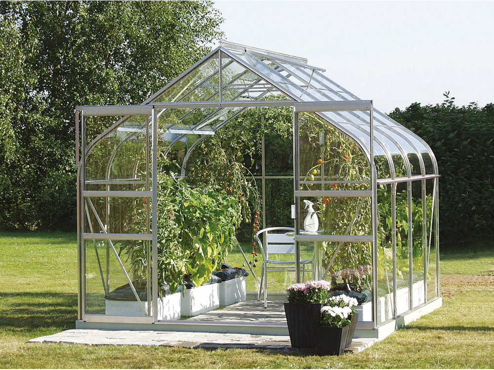 De Vitavia tuinkas Saturn valt op door zijn elegante, gebogen dakranden. Deze serre straalt niet alleen stijl uit, maar biedt ook volop ruimte voor het kweken van planten. Dankzij de dubbele schuifdeur is de kas eenvoudig toegankelijk.