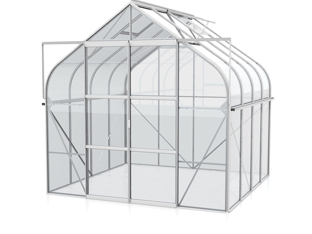De constructie is vervaardigd uit duurzaam geanodiseerd aluminium en voorzien van 3 mm veiligheidsglas, wat zorgt voor stabiliteit en maximale lichtinval. De gebogen randen zijn afgewerkt met UV-bestendige, transparante polycarbonaatplaten. Handige extra's zijn de geïntegreerde goten en 1 tot 4 dakramen (afhankelijk van het formaat) die zorgen voor een uitstekende ventilatie.