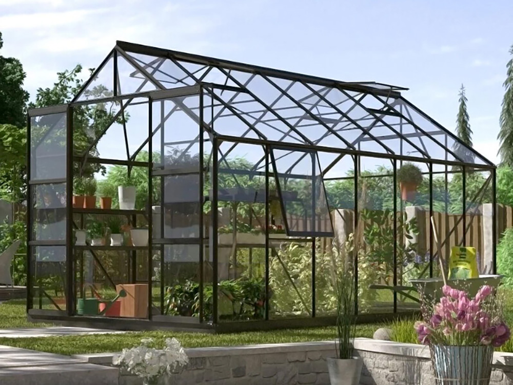 Geef je tuin een stijlvolle upgrade met de zwarte tuinkas Jupiter van Vitavia. Deze tuinkas combineert functionaliteit met elegantie. Perfect voor het kweken van groenten en kruiden in een beschermde omgeving. Dit luxueuze model heeft een dubbele schuifdeur, 2 tot 4 dakramen (afhankelijk van de grootte) en een extra zijvenster voor optimale ventilatie.