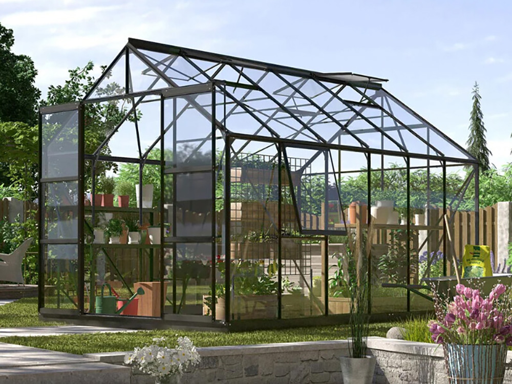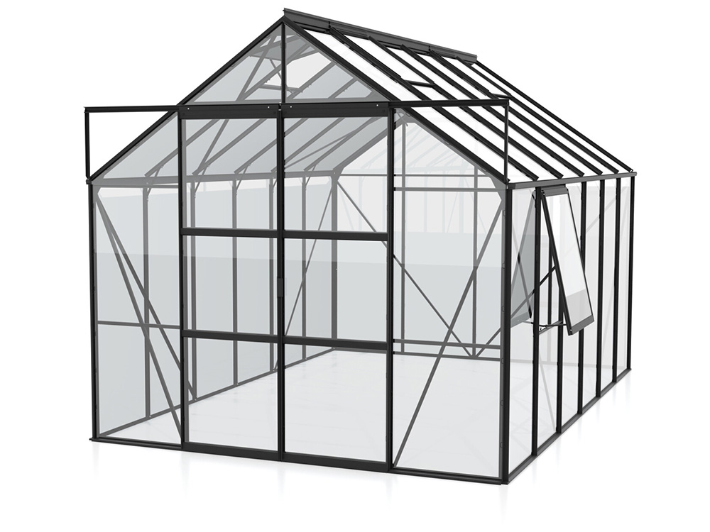 Geef je tuin een stijlvolle upgrade met de zwarte tuinkas Jupiter van Vitavia. Deze tuinkas combineert functionaliteit met elegantie. Perfect voor het kweken van groenten en kruiden in een beschermde omgeving. Dit luxueuze model heeft een dubbele schuifdeur, 2 tot 4 dakramen (afhankelijk van de grootte) en een extra zijvenster voor optimale ventilatie.