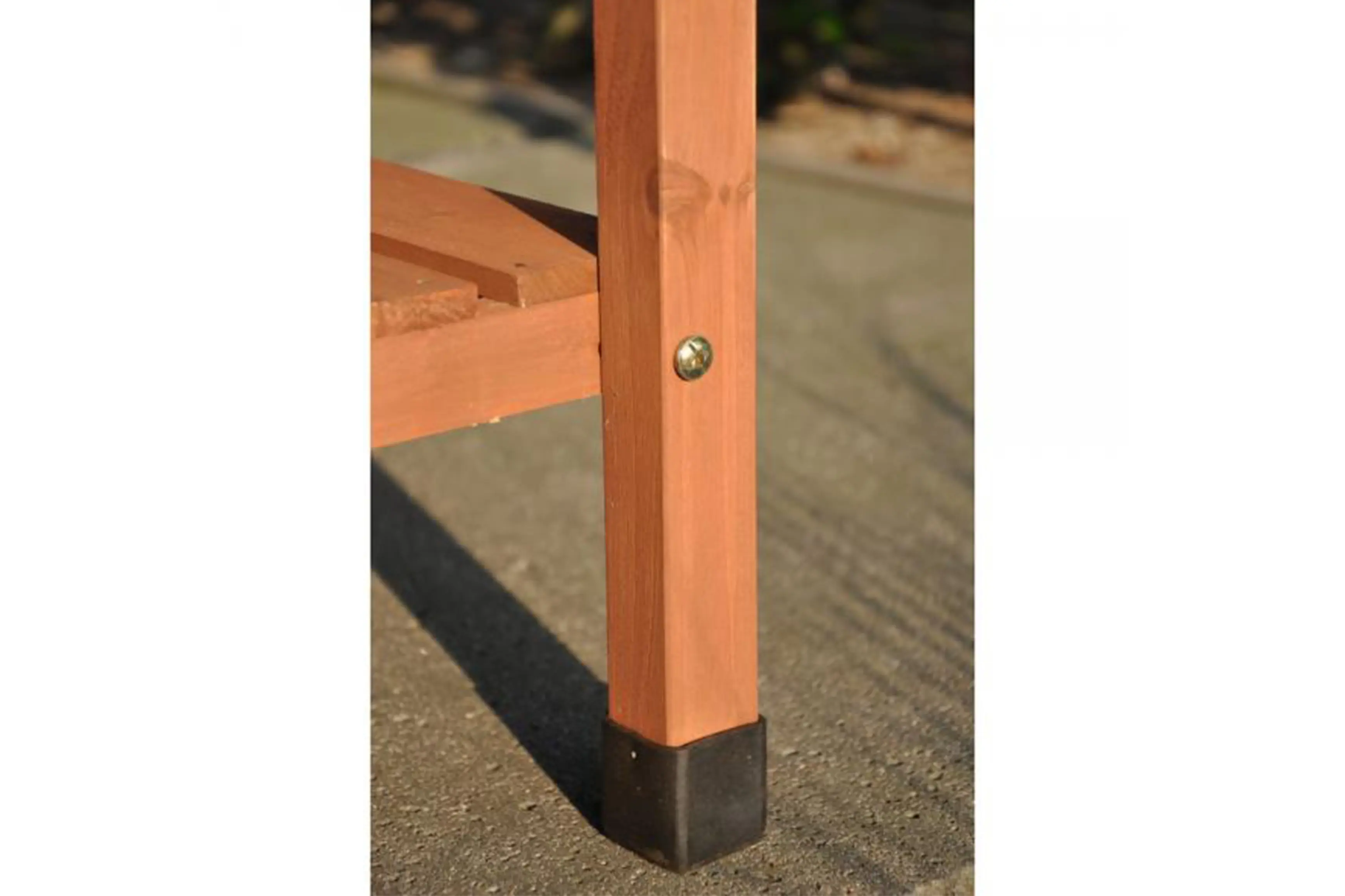 Het hout is verduurzaamd, heeft een bruine kleur en is afkomstig uit duurzaam beheerde bossen. De kweekbak is voorzien van een dichte houten bodem en heeft een afdichting in 4 mm polycarbonaat. De bovenkant kan opengeklapt worden en is voorzien van raamuitzetters met vleugelmoer en windvaste borging in verschillende standen. Bovendien is er onderaan een extra schap in hout voorzien waar je gereedschap op kwijt kunt of nog extra planten kunt zetten.