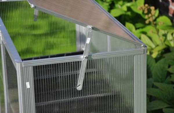 Het stevige aluminium frame kan eenvoudig worden gemonteerd met een schroevendraaier en de meegeleverde bouten en moeren. De afdichting van 4 mm dik dubbelwandig polycarbonaat wordt in het stevige aluminium frame gefixeerd voor een optimale bevestiging. Het polycarbonaat heeft een isolerende werking en zorgt voor diffuus groeilicht in de patiokas. Zo worden ideale omstandigheden voor het ontwikkelen van gewassen gecreëerd.