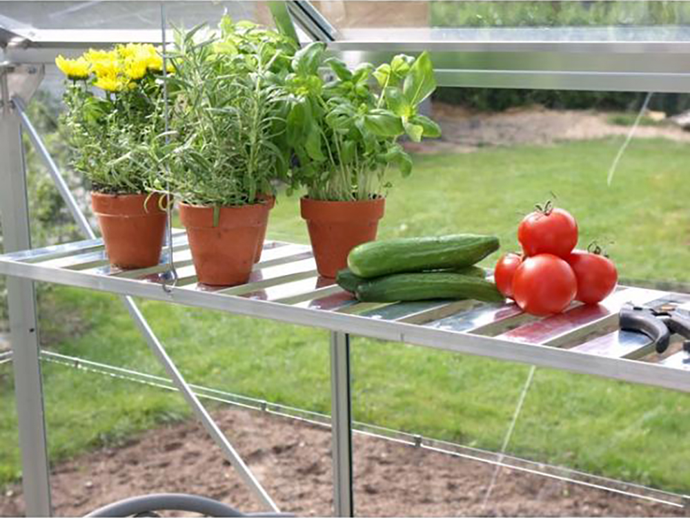 Dit opklapbare schap is eenvoudig aan het frame van jouw serre te monteren, en biedt je een handige opbergruimte voor planten en alledaagse gebruiksvoorwerpen.