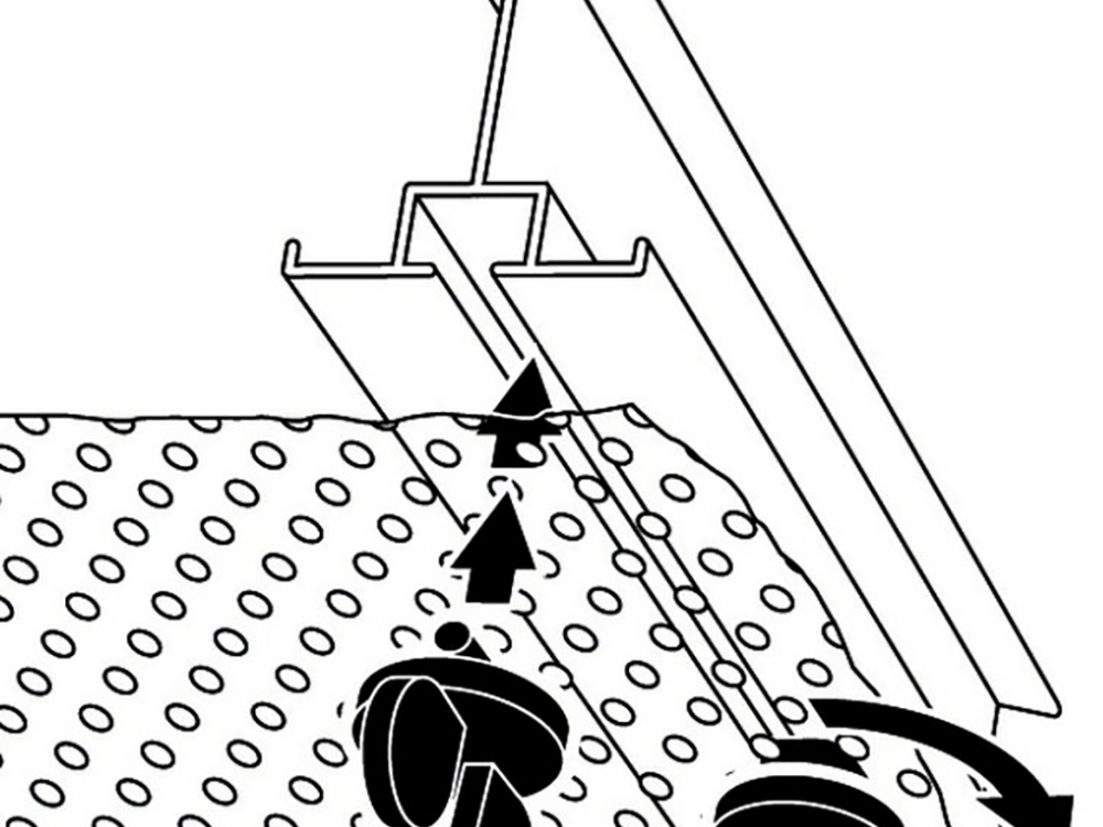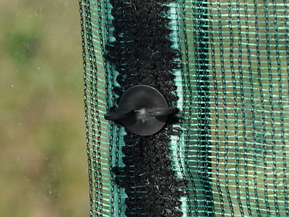 Noppenfolie of schaduwdoek kan heel eenvoudig aangebracht worden in de tuinkas (en achteraf terug verwijderd) met behulp van deze snapshots. Ze worden met een halve draai in het aluminium profiel bevestigd.