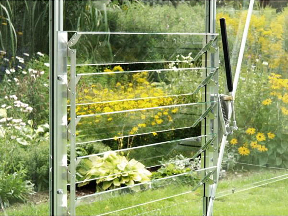 Met dit louvre raam komt er frisse lucht binnen en verdwijnt overbodige warmte, vocht en schimmels. Want als het te warm en te vochtig is in de tuinkas dan kunnen de planten sneller last hebben van ziektes en schimmels. Voor een gezond leefklimaat is het belangrijk om ten alle tijden voldoende luchtcirculatie te creëren.