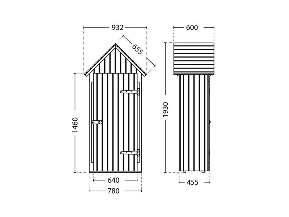 Tuinkast Wissant in grenenhout is een leuke berging voor de kleine buitenruimte. De kast met puntdak is voorzien van drie legboorden en een bodem in hout. Het is een leuk tuinelement voor het opbergen van tuinkussens, speelgoed voor de kinderen of barbecue materiaal.