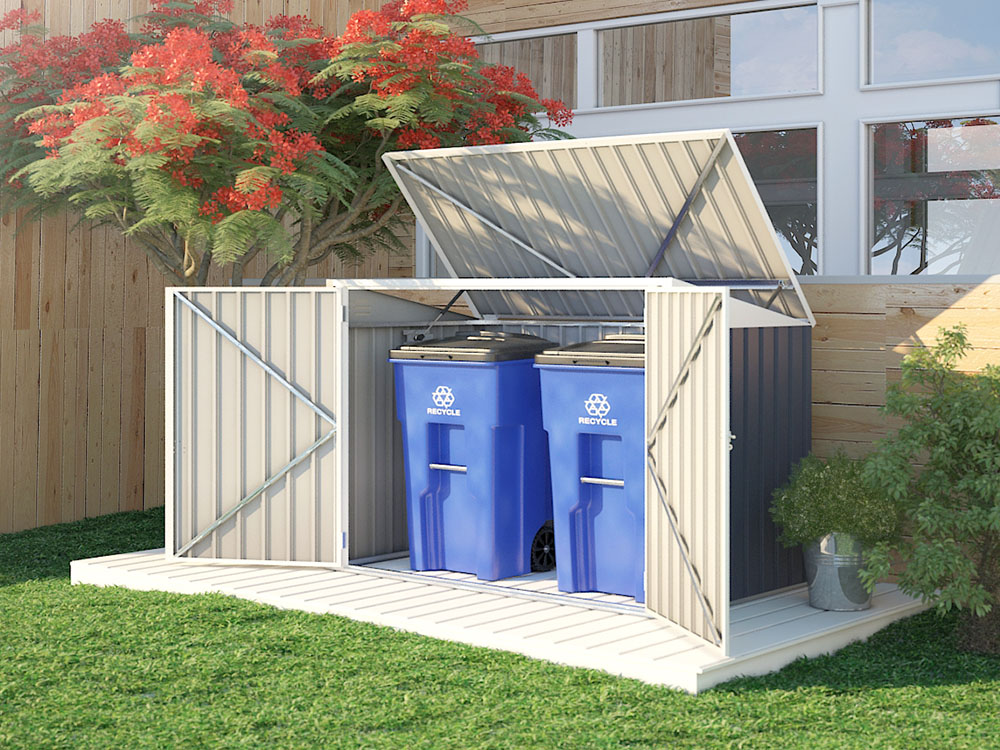 De Sinolily Polly B containerberging is de ideale oplossing om uw afvalcontainers stijlvol op te bergen. Met zijn lessenaarsdak en grootte, biedt deze berging plaats aan twee containers van maximaal 240 liter.