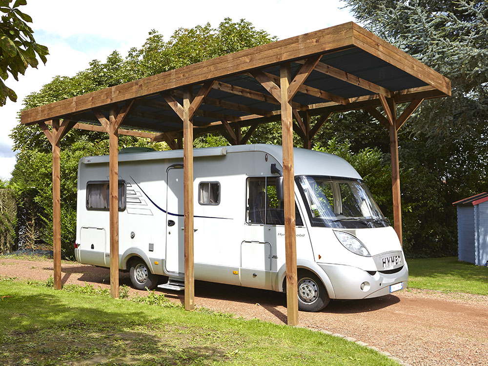 Campingcars of mobilhomes houden er ook van om droog en beschut te staan! Als liefhebbers van deze vorm van reizen is het belangrijk om een overdekte standplaats te voorzien voor je campingcar. Deze extra hoge carport biedt de perfecte oplossing!