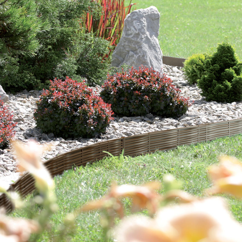 Een sterke, stevige en flexibele tuinboord die bestand is tegen alle weersomstandigheden. De structuur van deze afranding lijkt op gevlochten riet en het geheel oogt zeer elegant, deze kunststoffen boord heeft geen onderhoud nodig.