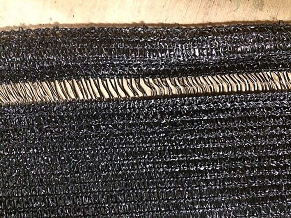 Het doek is aan de boven- en onderkant voorzien van een ingeweven bevestigingsbaan, waardoor een binddraad of een metaaldraad geregen dient te worden.
