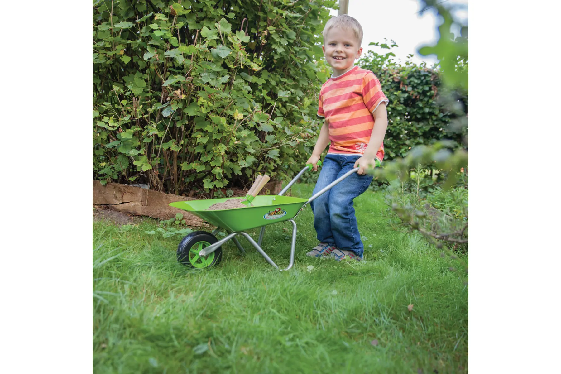Deze vrolijke kinderkruiwagen van Esschert Design biedt kinderen de kans om actief in de tuin te werken en zich tegelijkertijd eindeloos te vermaken. Of ze nu tuinafval vervoeren of hooi voor de konijnen aanvoeren, ze ontdekken spelenderwijs veel over de planten- en dierenwereld.