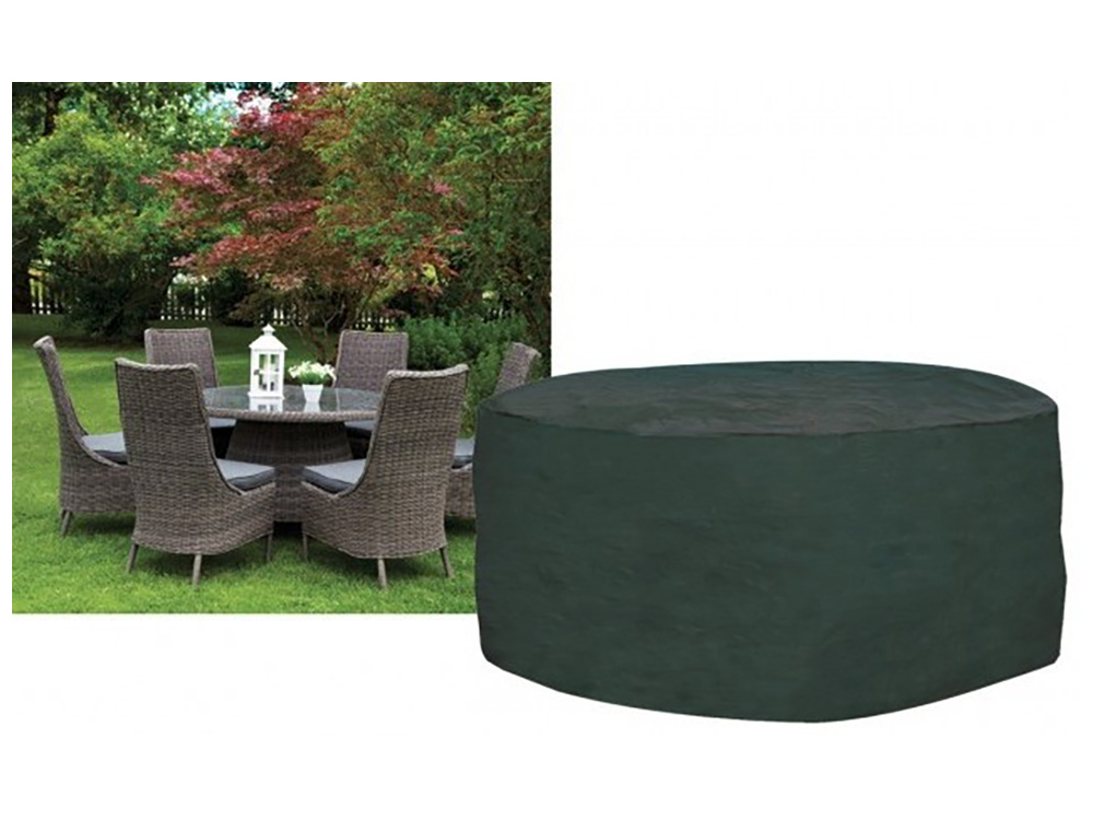 Deze kwalitatieve beschermhoes voor tuinmeubelen is geschikt voor een ronde tafel met 6 stoelen. Dankzij deze hoes blijft jout tuinmeubelset jaar na jaar in onberispelijke staat. Hij is gemaakt uit een erg stevige en kwalitatieve kunststof waardoor de meubelhoes een jarenlange weerbestendige bescherming aan jouw tuinmeubelset zal bieden.