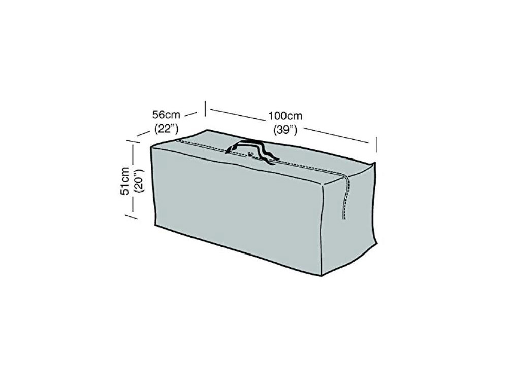 De opbergtas heeft waterdichte naden en kan gebruikt worden tijdens een lange periode (b.v. in de winter of tijdens een reis) of om de tuinkussens te beschermen op een regenachtige dag in de zomer. De tas is bovenaan voorzien van een rits en handige draaglussen. De rits is zeer breed waardoor je er de kussens zeer vlot in en uit kan halen.
