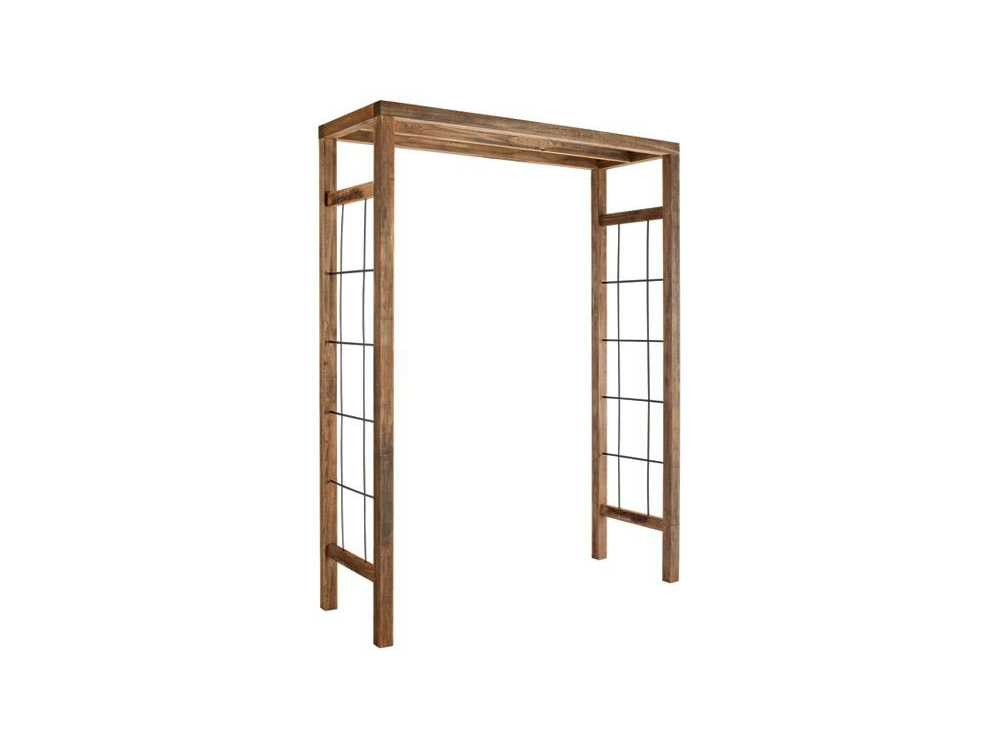 Strakke, moderne houten rozenboog van grenenhout, perfect als klimhulp voor allerlei klimplanten. Deze stijlvolle pergola is voorzien van gecoat metalen traliewerk aan beide zijden voor optimale ondersteuning.