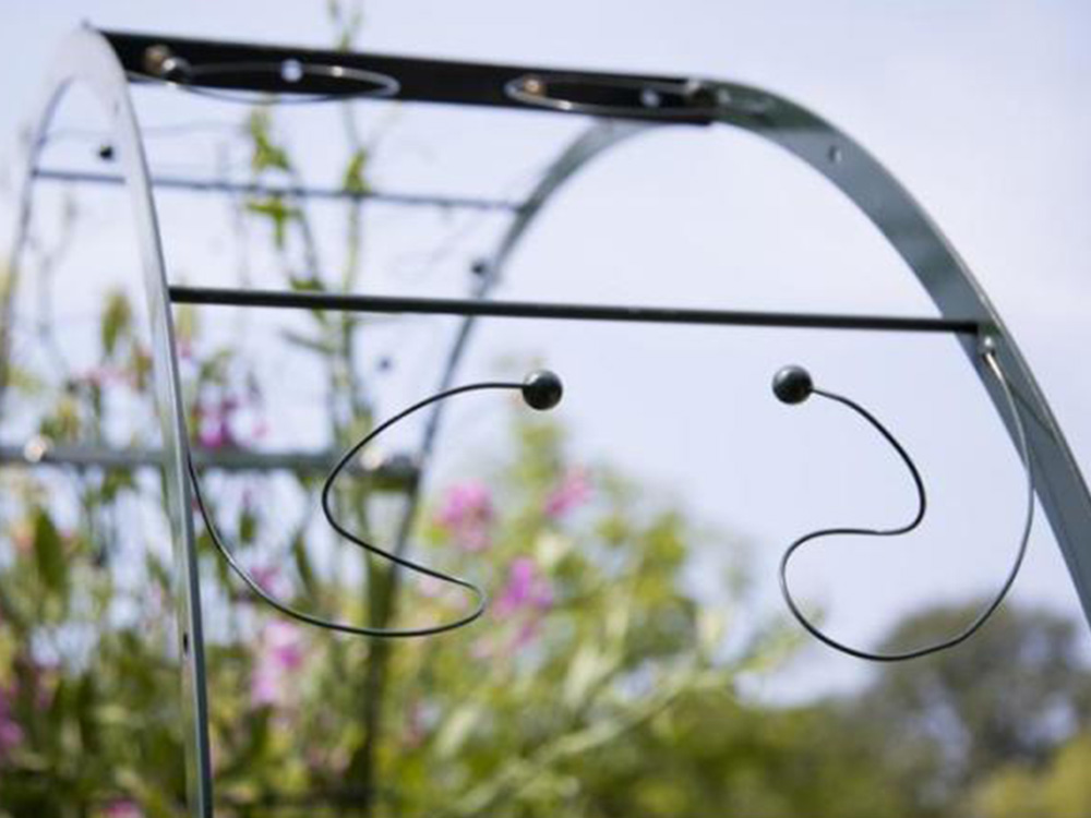 Rozenboog van zeer goede kwaliteit. Een degelijke en zeer stevige rozenboog die is voorzien van buigbare klimdraden om klimplanten te begeleiden. Dit maakt het gebruik van vele losse binddraadjes overbodig.