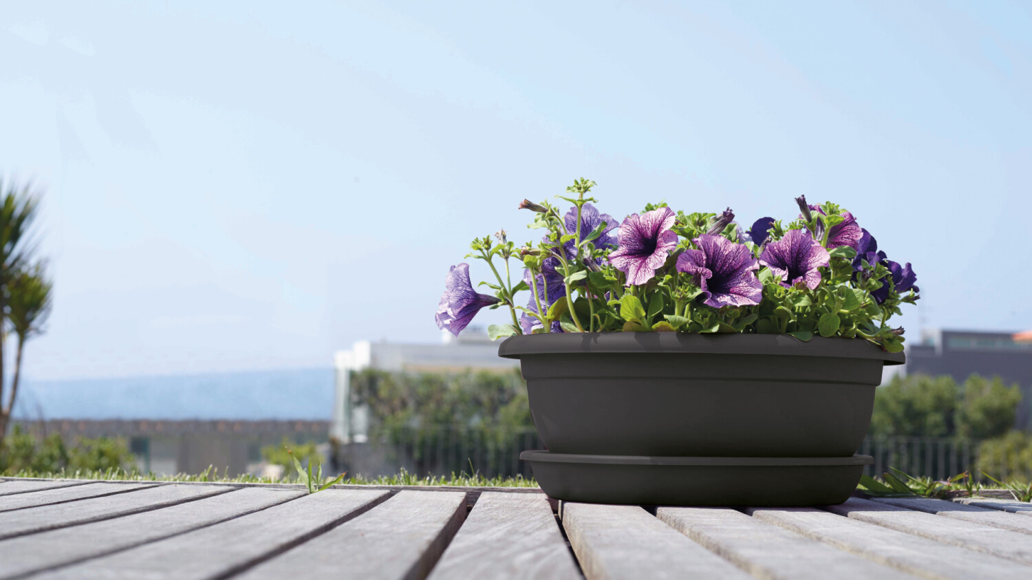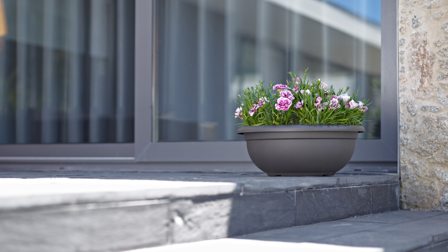 Bloemenschaal Venezia in antraciet van het merk Artevasi. Deze ronde bloempot is vervaardigd uit een UV-bestendige kunststof, waardoor hij zowel binnen als buiten kan worden gebruikt.