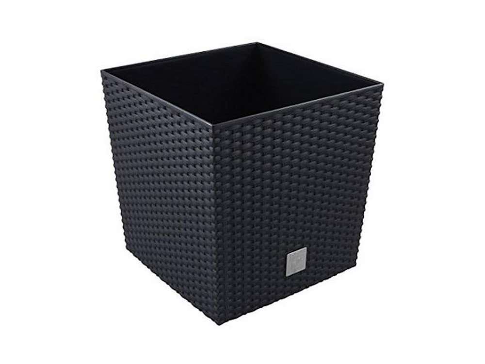 Mooie vierkante sierpot in duurzaam kunststof. Deze bloempot is afgewerkt met een mooie ratan-look waardoor je de indruk krijgt dat het geweven kunststof is.