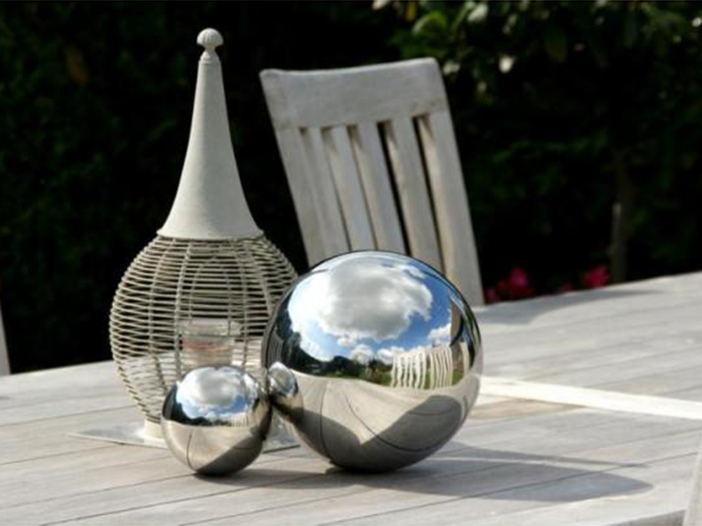 Laat je creativiteit de vrije loop en creëer schitterende effecten in de tuin. Ze zijn prachtig in een bloemborder, op het terras of drijvend in de vijver. De gepolijste roestvrijstalen decoratiebal is weerbestendig en kan het hele jaar door buiten blijven.