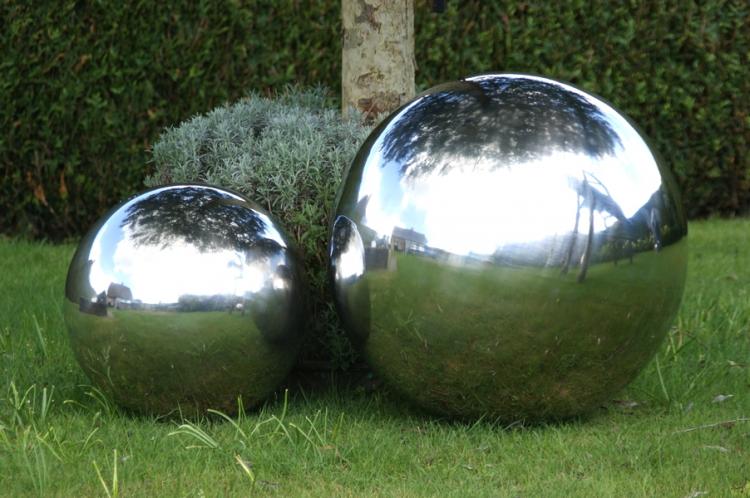 Tegenwoordig zie je deze spiegelende bollen steeds vaker in tuinen, niet meer om heksen te verjagen, maar vanwege hun esthetische waarde. De bol weerspiegelt het volledige panorama van de tuin, en geplaatst bij een vijver, schrikt de lichtweerkaatsing reigers af.