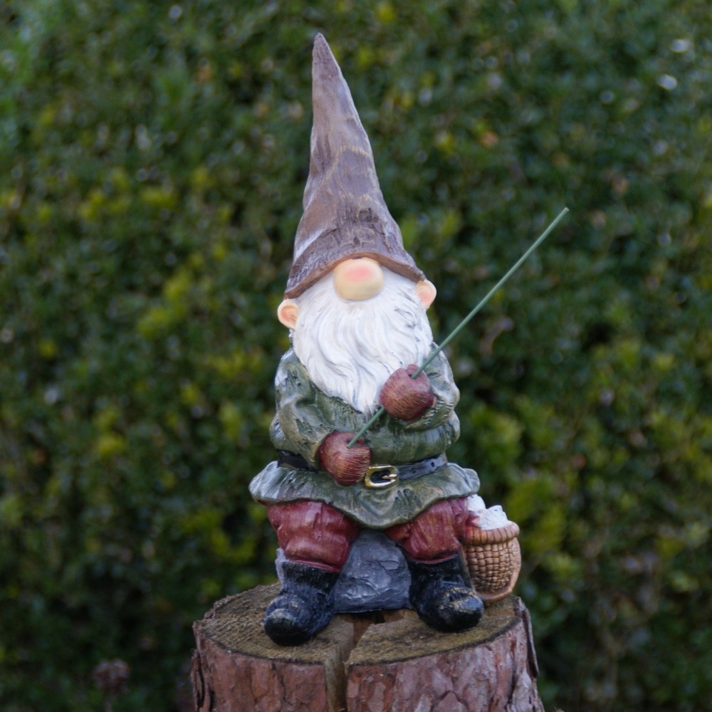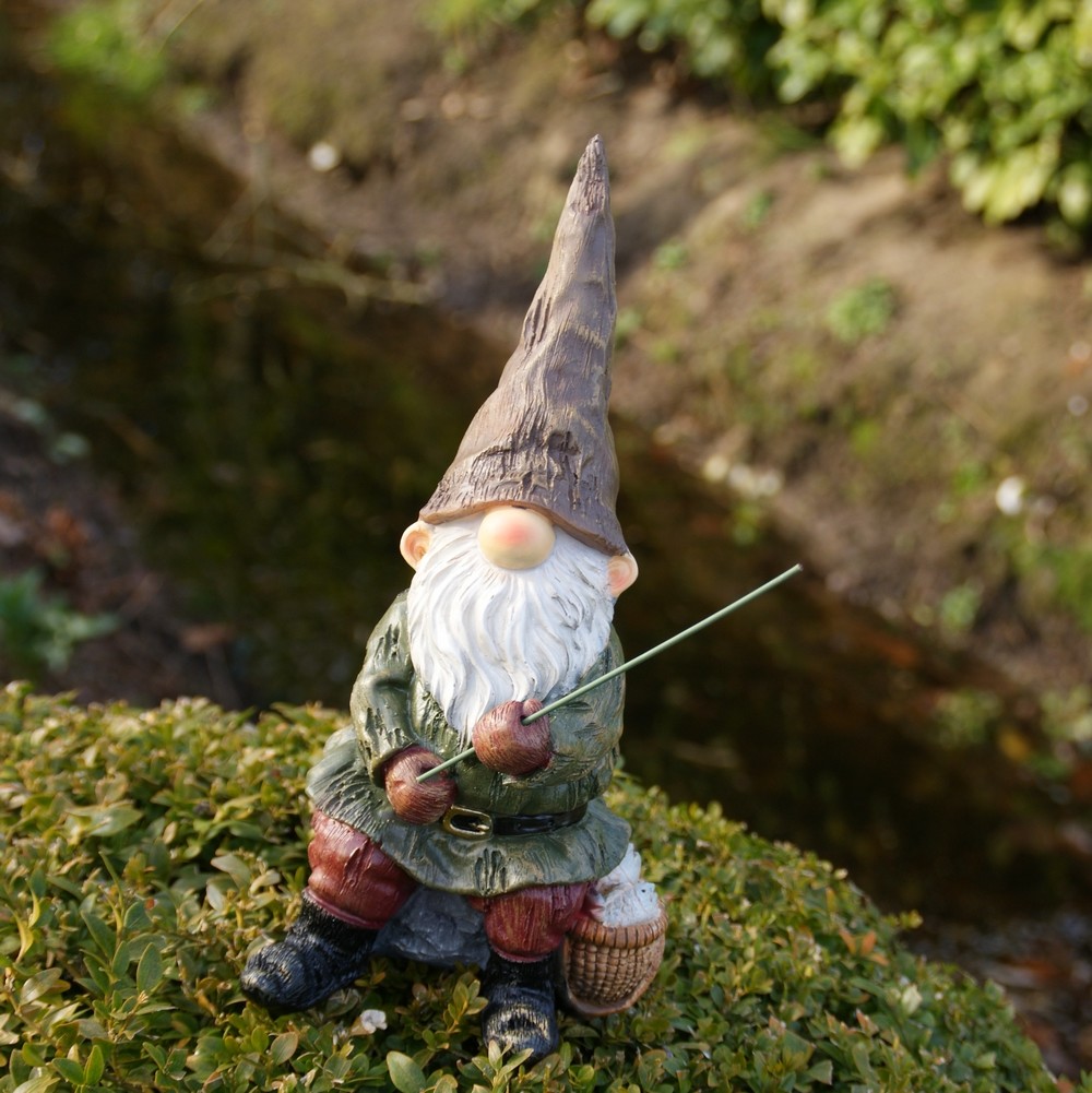 Deze vrolijke kabouter van Esschert design is helemaal in zijn element zolang hij maar kan vissen. Zet hem bij de vijver of naast het aquarium in huis en hij zal zich direct thuis voelen. Het beeld is gemaakt van polyresin, een vorst- en UV-bestendig materiaal.
