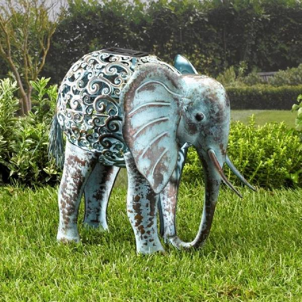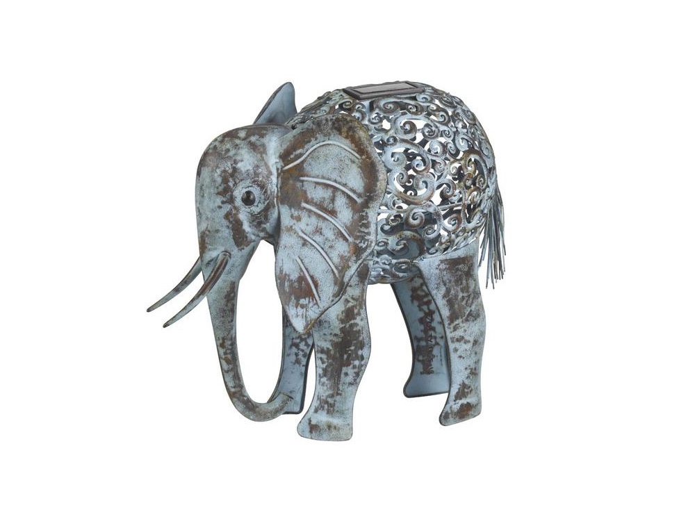 Ben je al op reis geweest naar Afrika of naar het Zuiden van Azië, of droom je er van om een olifant eens in het echt te zien? Dan is dit ornament van een olifant perfect voor jou! De olifant is vervaardigd uit metaal en is heel natuurgetrouw geschilderd. De verlichting op zonne-energie straalt bij schemering een mooi gekleurde lichtgloed uit.