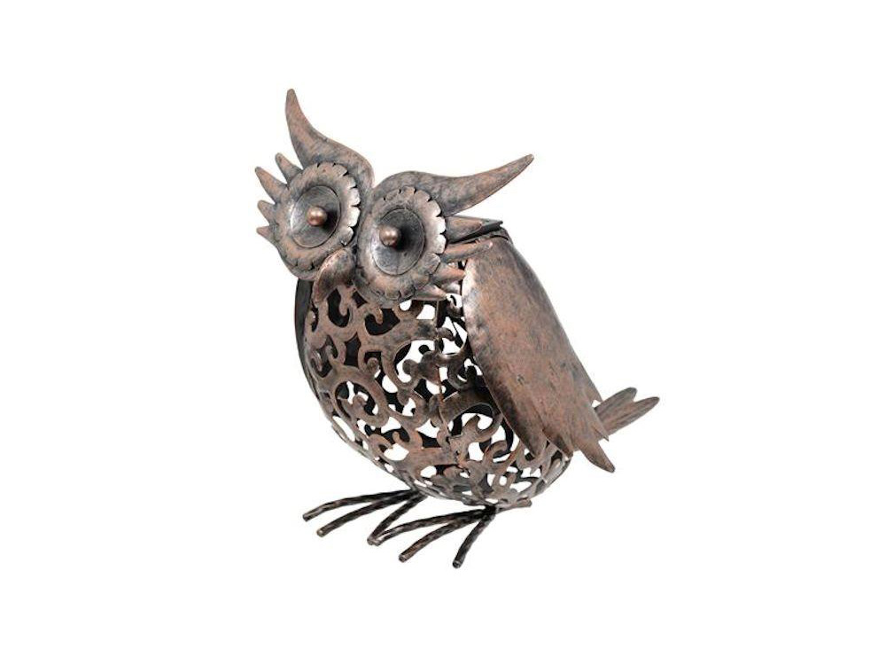 Als je graag een originele, kwalitatieve decoratie wil toevoegen aan jouw tuin, dan is deze metalen uil de perfecte keuze. De koperkleurige uil is voorzien van verlichting op zonne-energie zodat hij ook 's avonds en 's nachts jouw tuin verder zal opfleuren.
