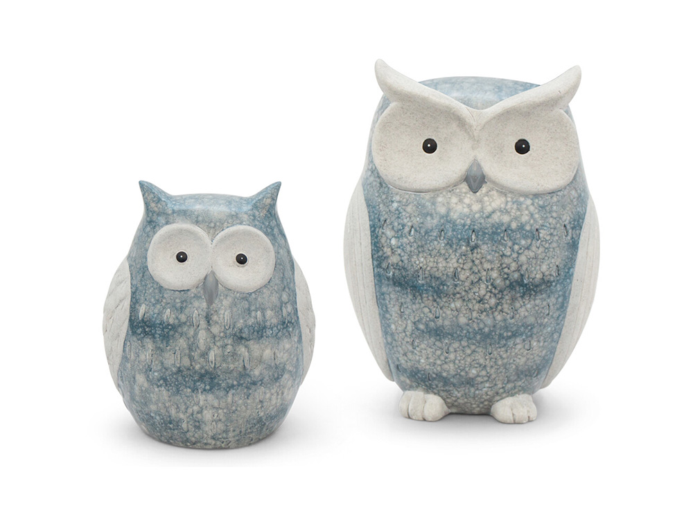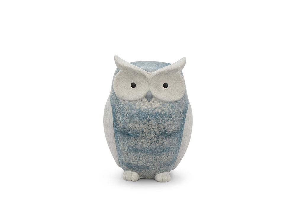 Deze fraaie uil maakt deel uit van de Basalt collectie. Het keramieken beeld in grijsblauwe tinten heeft een natuurstenen look met marmer effect. Het beeld past zowel in het interieur als op de tuintafel.