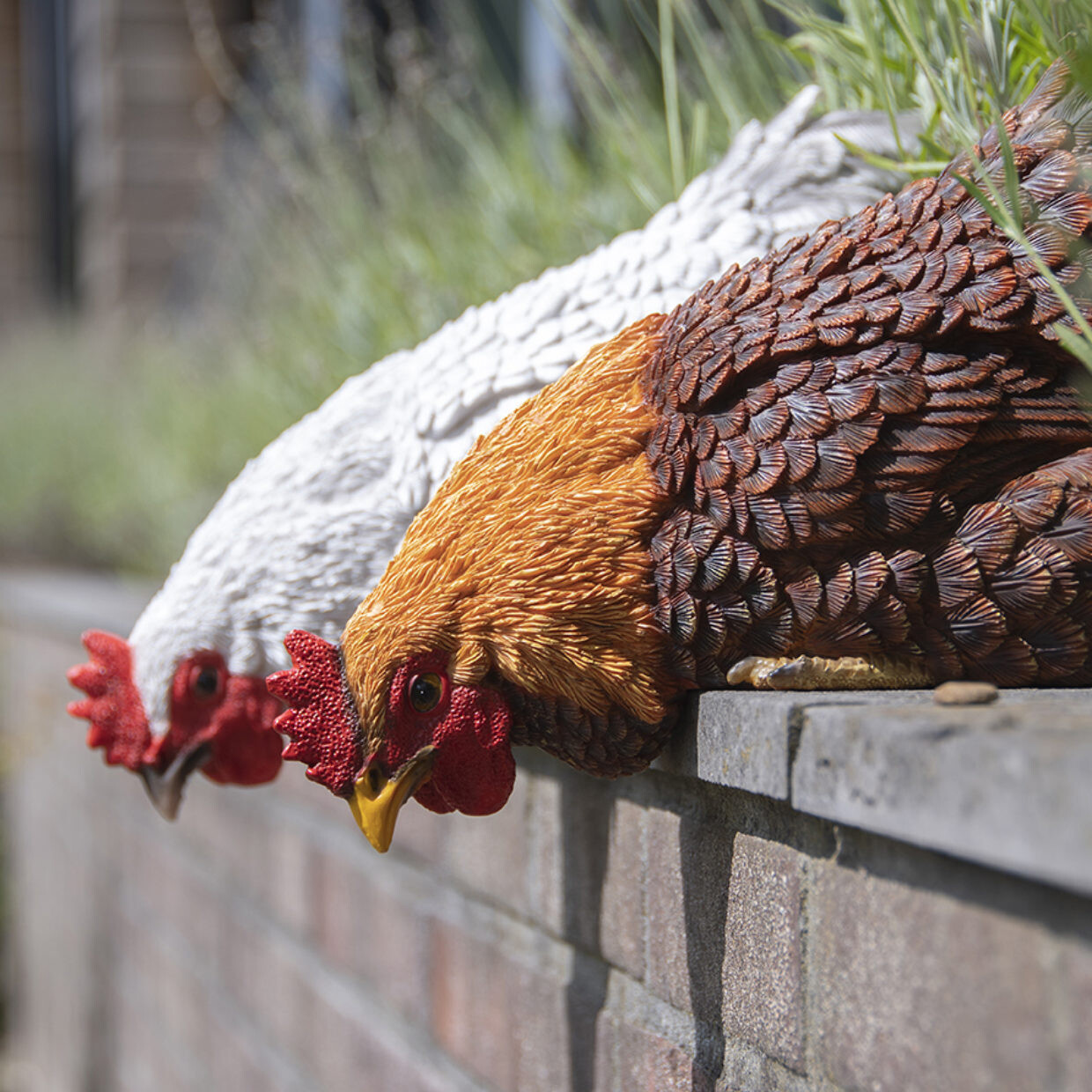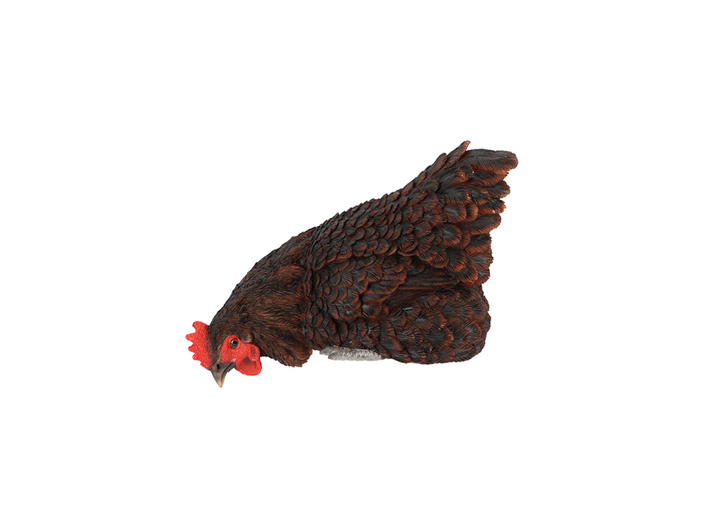 Deze charmante vensterbankkip tovert een glimlach waar ze ook staat, klaar om jouw ruimte op te vrolijken. Het beeld is gemaakt uit polyresin, een duurzame kunsthars die bestand is tegen de meeste weerinsvloeden. Je kan kiezen tussen een witte, een bruine of een zwarte kip.
