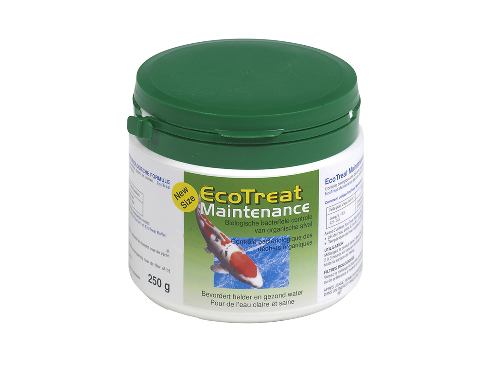 Eco Treat Maintenace staat in voor de biologische bacteriële controle van organisch afval in vis- en tuinvijvers, watertuinen, natuurlijke vijvers en meren. Eco Treat Maintenace is een speciaal samengestelde mengeling van natuurlijke micro-organismen.