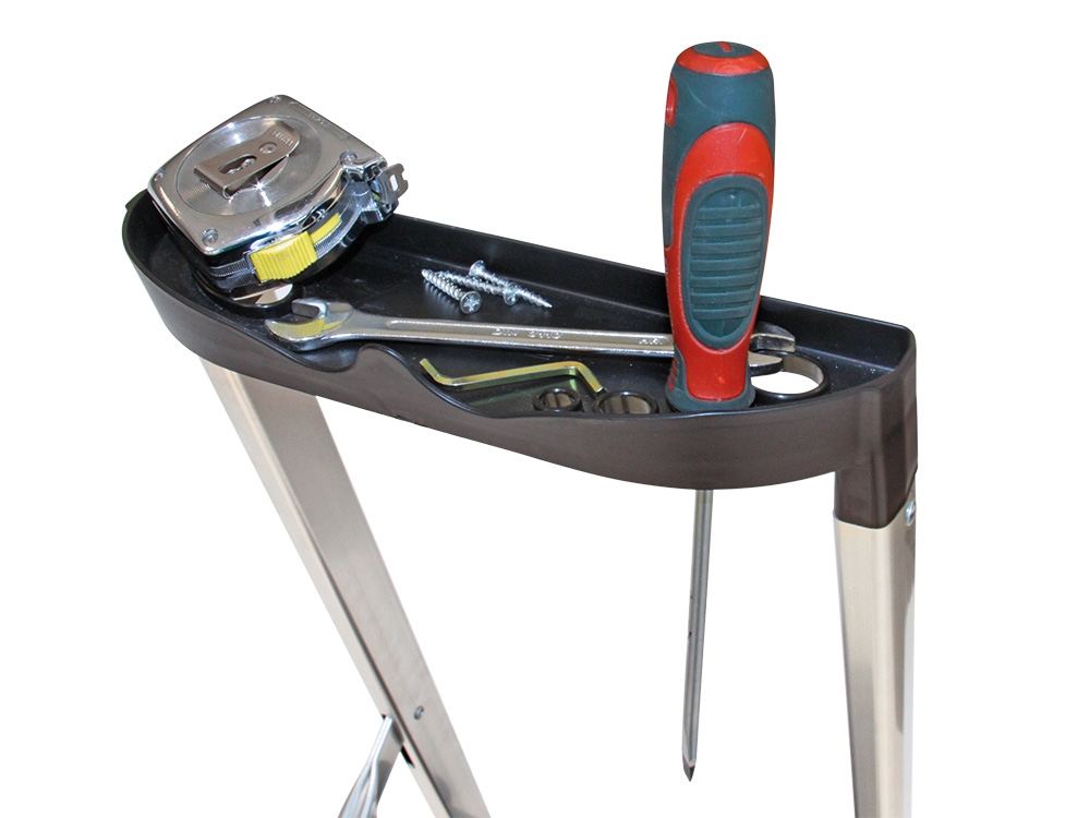 Om de grip op de treden zo lang mogelijk hoog te houden, zijn de profielen behandeld met een vuilafstotende laag. Hierdoor kan je veilig en met vertrouwen werken, zelfs onder vochtige omstandigheden. De Trapladder Power Step aluminium is ook voorzien van een handige gereedschapshouder, die zich bovenaan de ladder bevindt. Zo heeft u altijd uw benodigde gereedschap binnen handbereik.