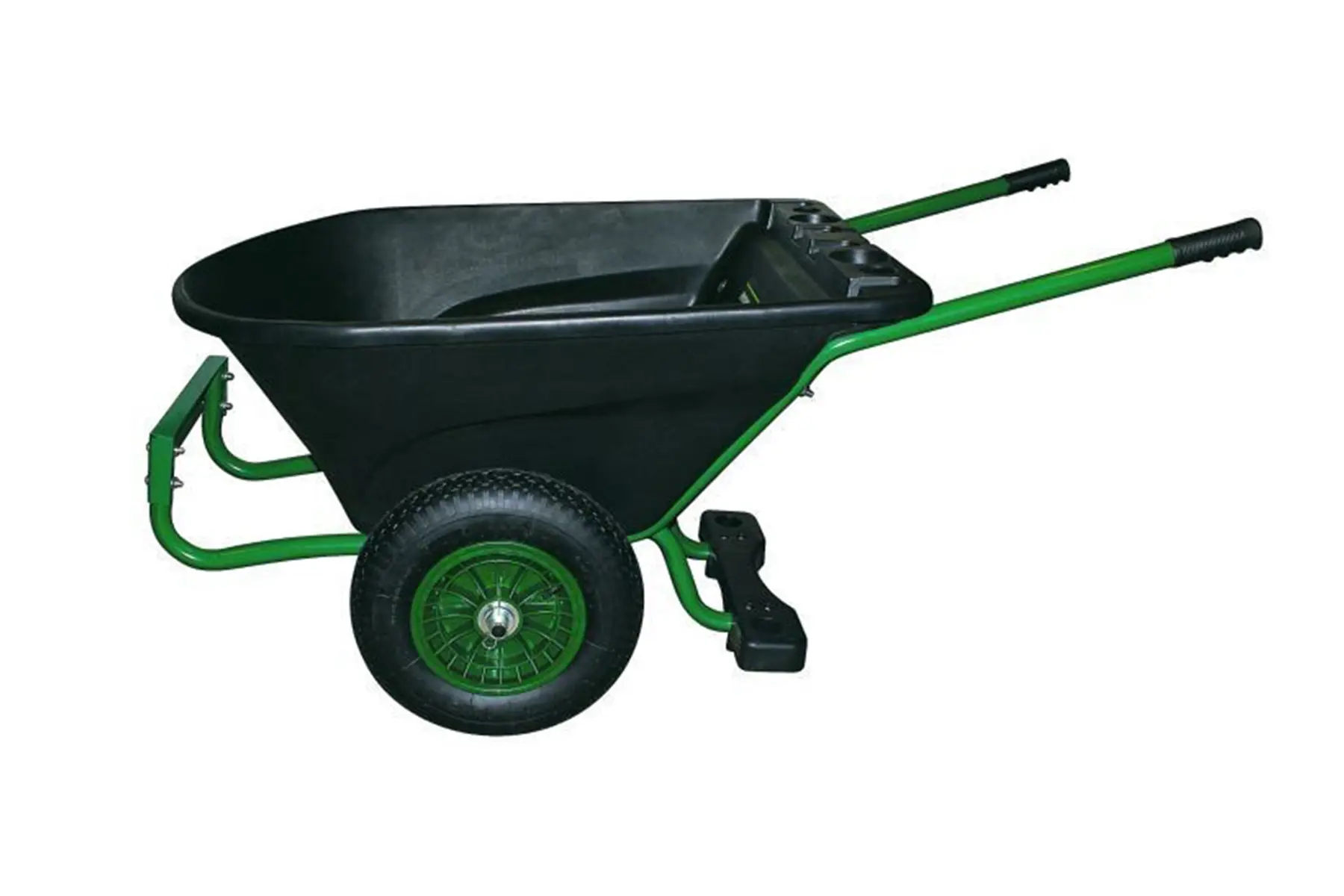 Handige tuinwagen met twee wielen en gereedschapshouder. Deze multifunctionele kruiwagen met een inhoud van 125 liter is voorzien van een dubbele wielbasis, stevige handgrepen en een voorklep ter bescherming van de bakwagen. Hierdoor kan de tuinwagen niet omtuimelen en is hij makkelijk bestuurbaar.