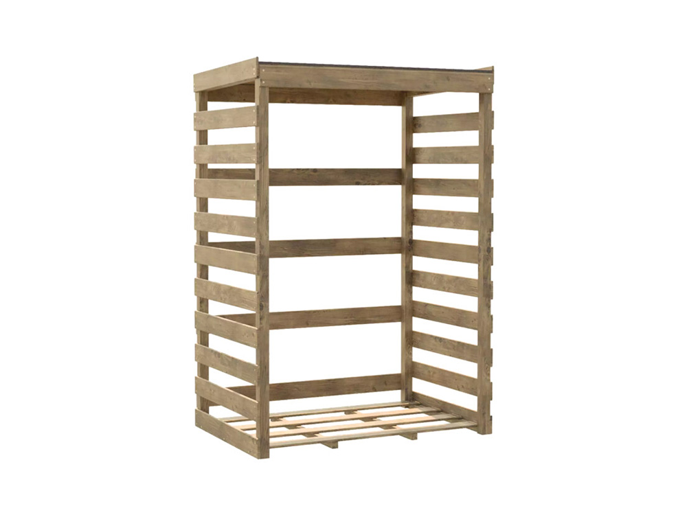 De Columbus houtberging is ontworpen om meerdere kubieke meter houtblokken op te slaan, beschermd tegen de elementen. De houtopslag van Forest-Style is gemaakt uit geïmpregneerde Noorse den afkomstig uit duurzaam beheerde bossen. Deze opslagruimte maakt het efficiënt organiseren van houtblokken van verschillende maten mogelijk.