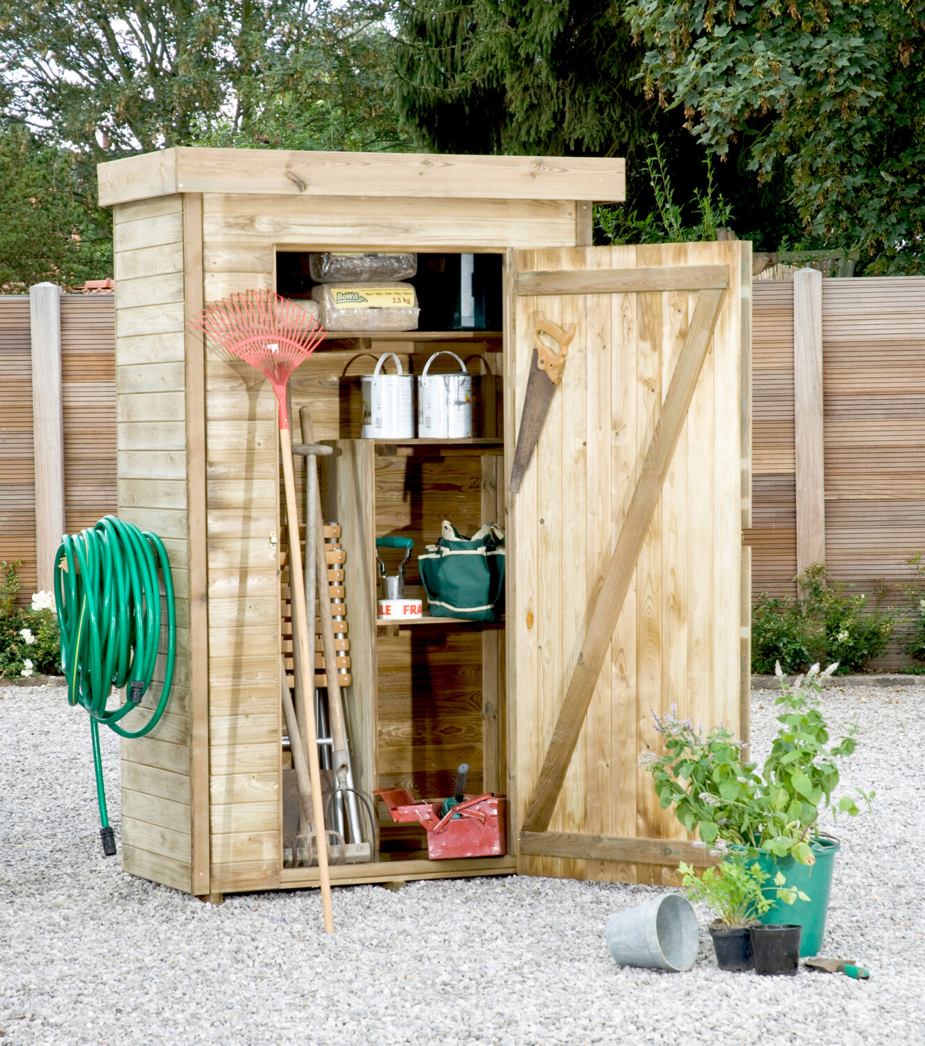 Theo is een leuke compacte tuinberging, eerder een tuinkast met een moderne uitstraling. De berging is voorzien van een plankenvloer en is reeds vooraf ingedeeld met houten opbergboorden.