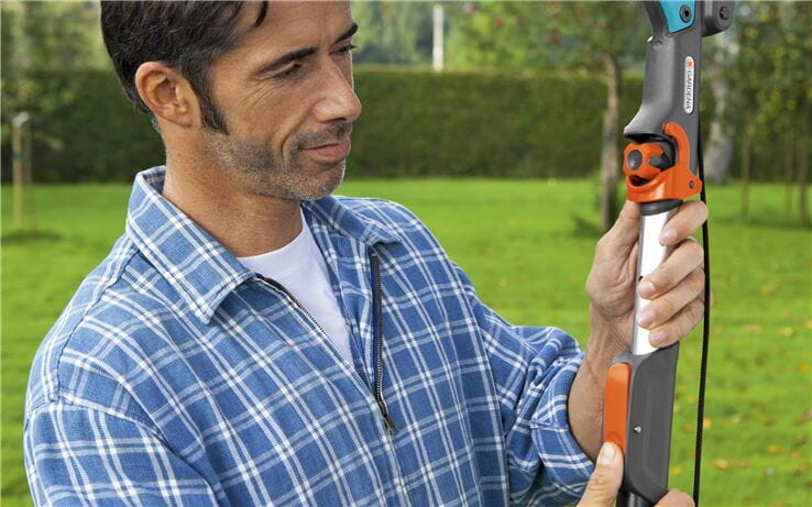 De telescopische steel van Gardena kan, dankzij het kliksysteem, moeiteloos in stappen van 26 cm uitgeschoven worden van 160 tot 290 cm. Dit maakt het mogelijk om comfortabel te werken tot op een hoogte van ongeveer 5 m, aangepast aan de werksituatie en lichaamslengte. De telescoopsteel is compatibel met alle combisystem gereedschappen van Gardena.