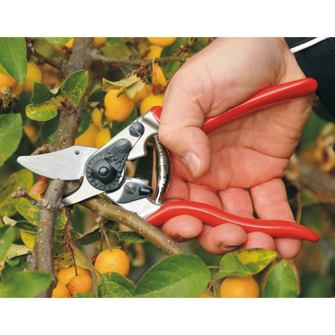 Snoeischaar Felco 6 is het kleine broertje van de klassieke Felco 2! Het is een ergonomische professionele snoeischaar met comfortabele, lichte en stevige handgrepen van gesmeed aluminium. Zowel het bovenmes als het geschroefd ondermes van de spits toelopende snoeibek zijn gemaakt in hoogwaardig gehard staal. Alle onderdelen van deze schaar kunnen worden vervangen.
