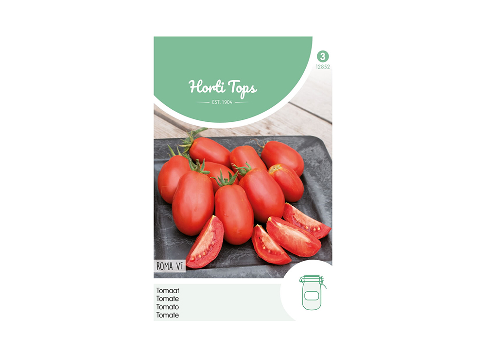 Zaai tomatenzaden van de Roma vanaf eind februari in een zaaibakje bij 20°C of later buiten onder glas. Na het verspenen kun je ze uitplanten in een kas of potten.