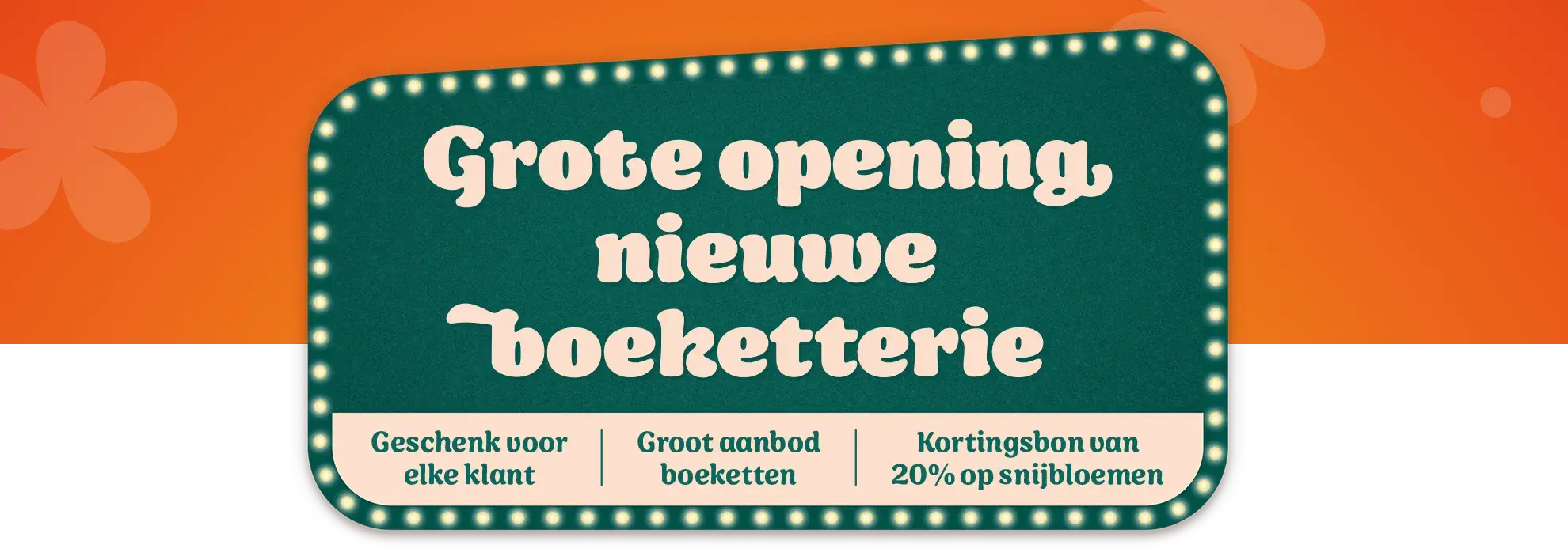 Zo’n prachtig nieuwe afdeling vraagt om een feestelijke opening. Kom onze nieuwe boeketterie ontdekken tijdens ons groot openingsweekend op 11 en 12 februari. Elke klant krijgt een leuke attentie, en maakt bovendien kans op een romantische prijs: een weekendverblijf in Pairi Daiza! Met Valentijn in het vooruitzicht, is dit het perfecte weekenduitstapje om je geliefde in de bloemetjes te zetten!